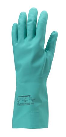 Védőkesztyű, nitril, vegyszerálló, érdesített, kesztyű, 7/S méret, zöld